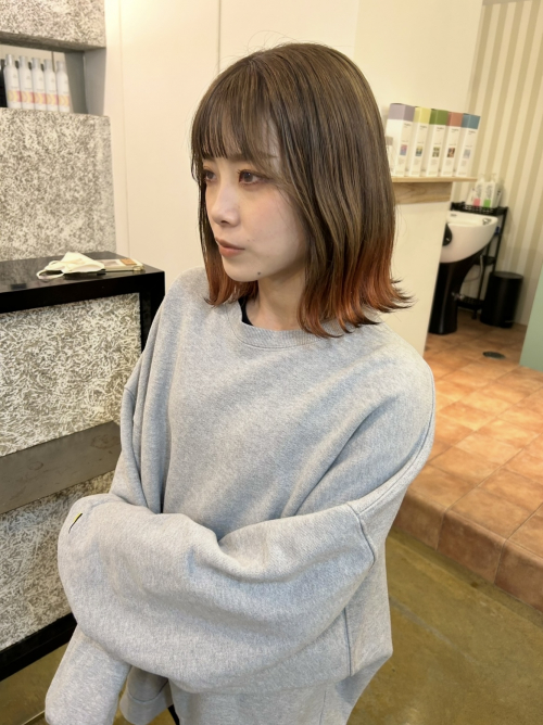 毛先にほんのりオレンジを効かせたさりげないデザインカラーで動いたときや巻いたときに表情が出るのがポイントです★