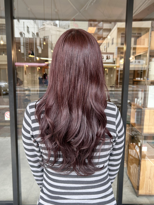 カラーはブリーチなしのダブルカラーで鮮やかなカシスレッドに♪