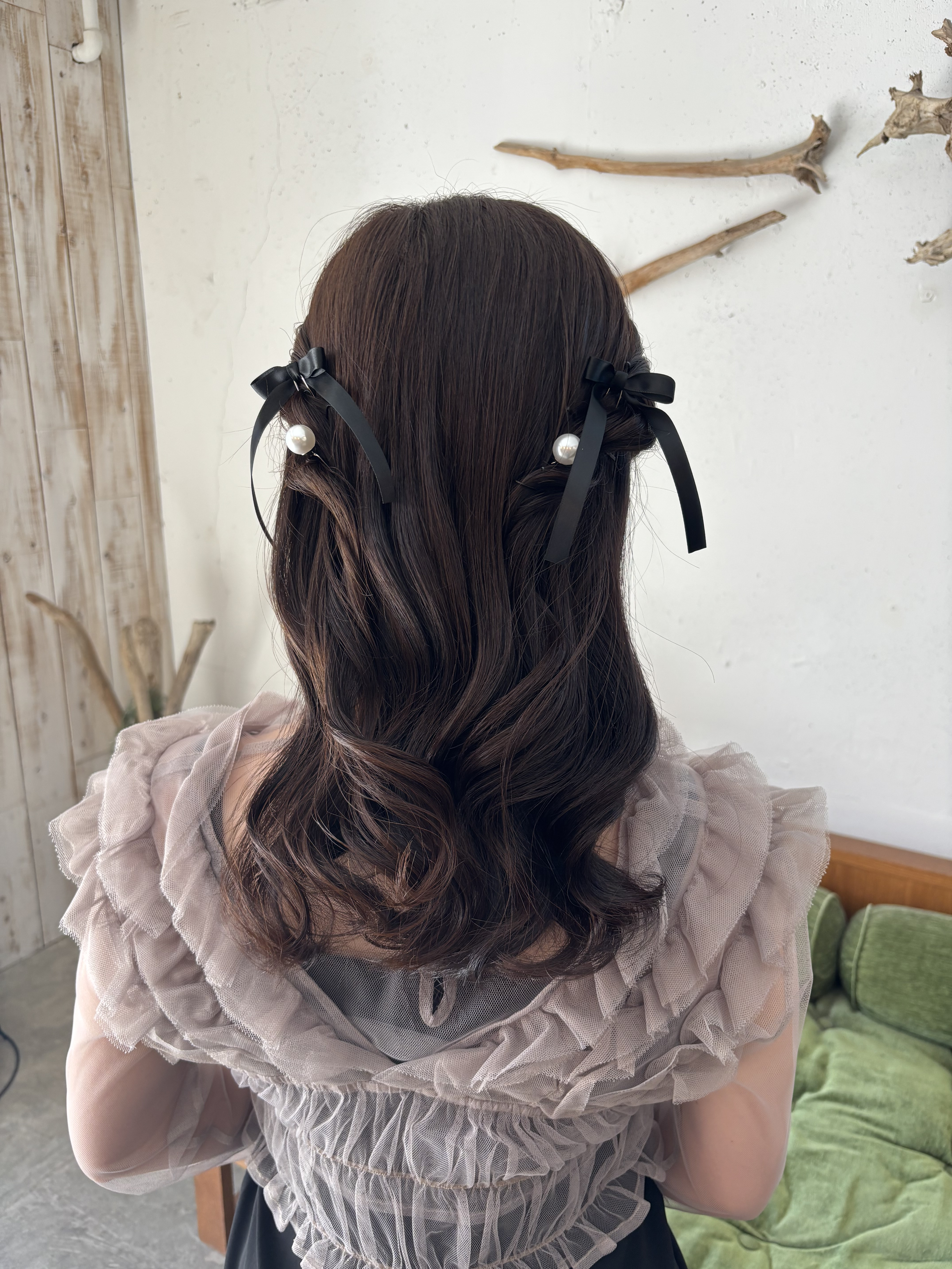 リボン×パールのハーフツインアレンジ