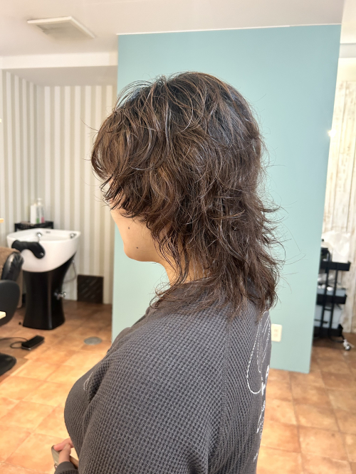 がっつりのウルフスタイルに、ワンカールで巻いたようなパーマで雰囲気を出しました★